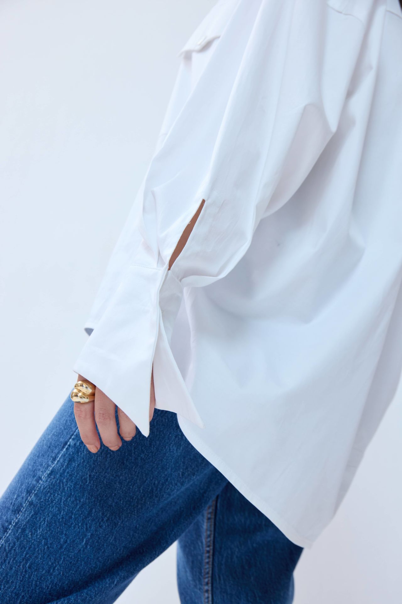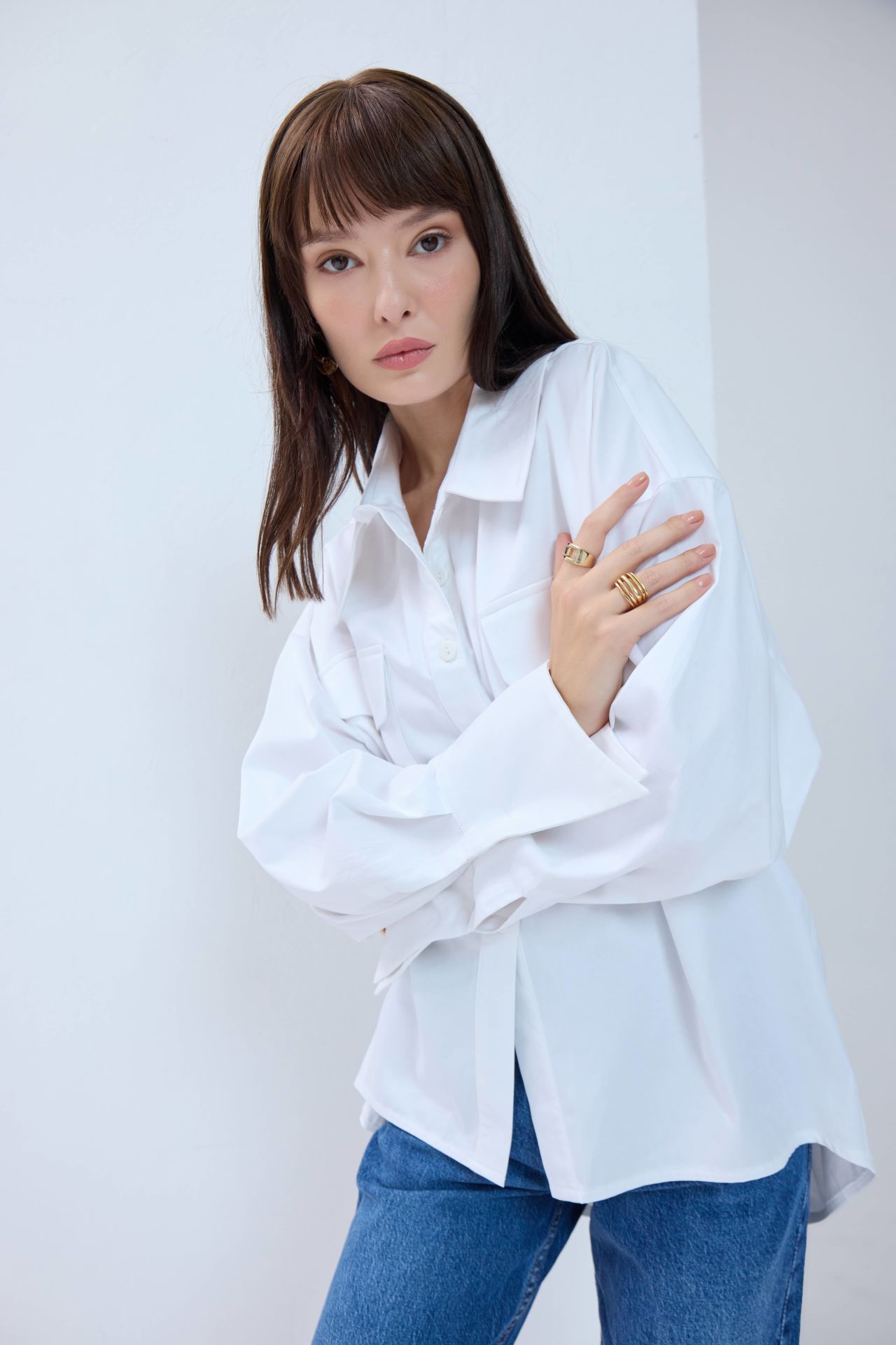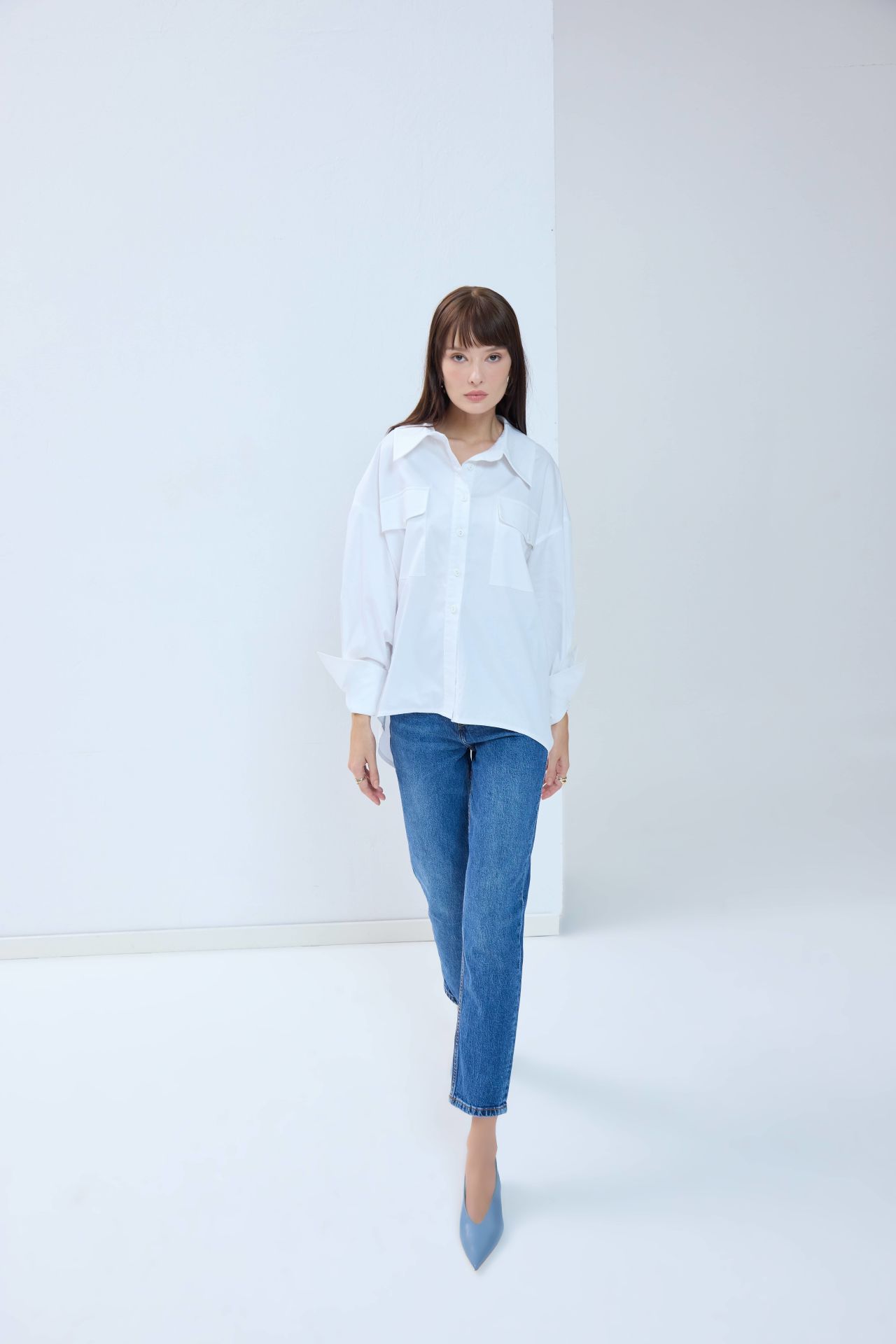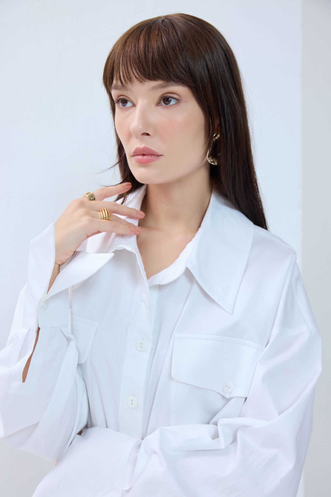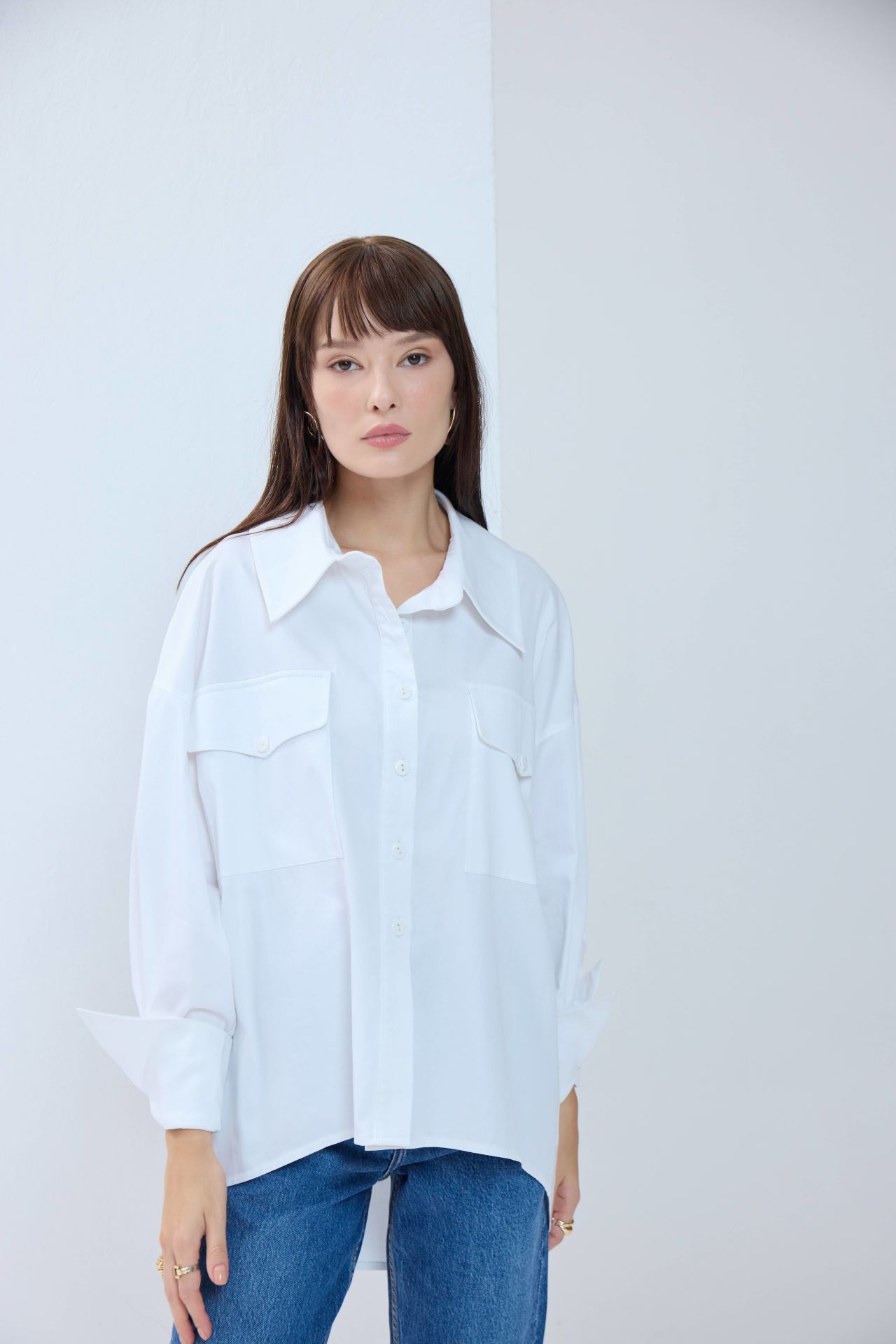 Özel tasarımımız kaplumbağa gömlekle tanışın. Önden klasik uzunlukta, arkaya doğru kesintisiz uzayan bu tasarım gömlek modern ve konforlu bir siluete sahip. Kalıbı oversize'dır.