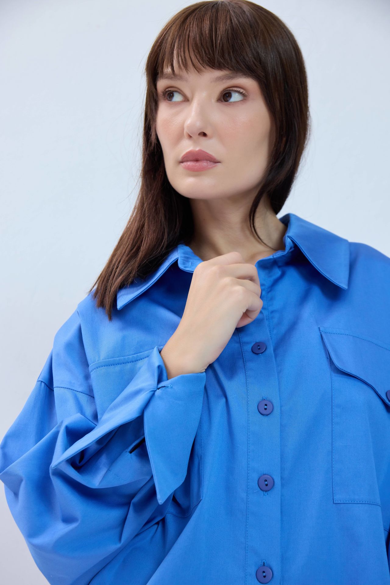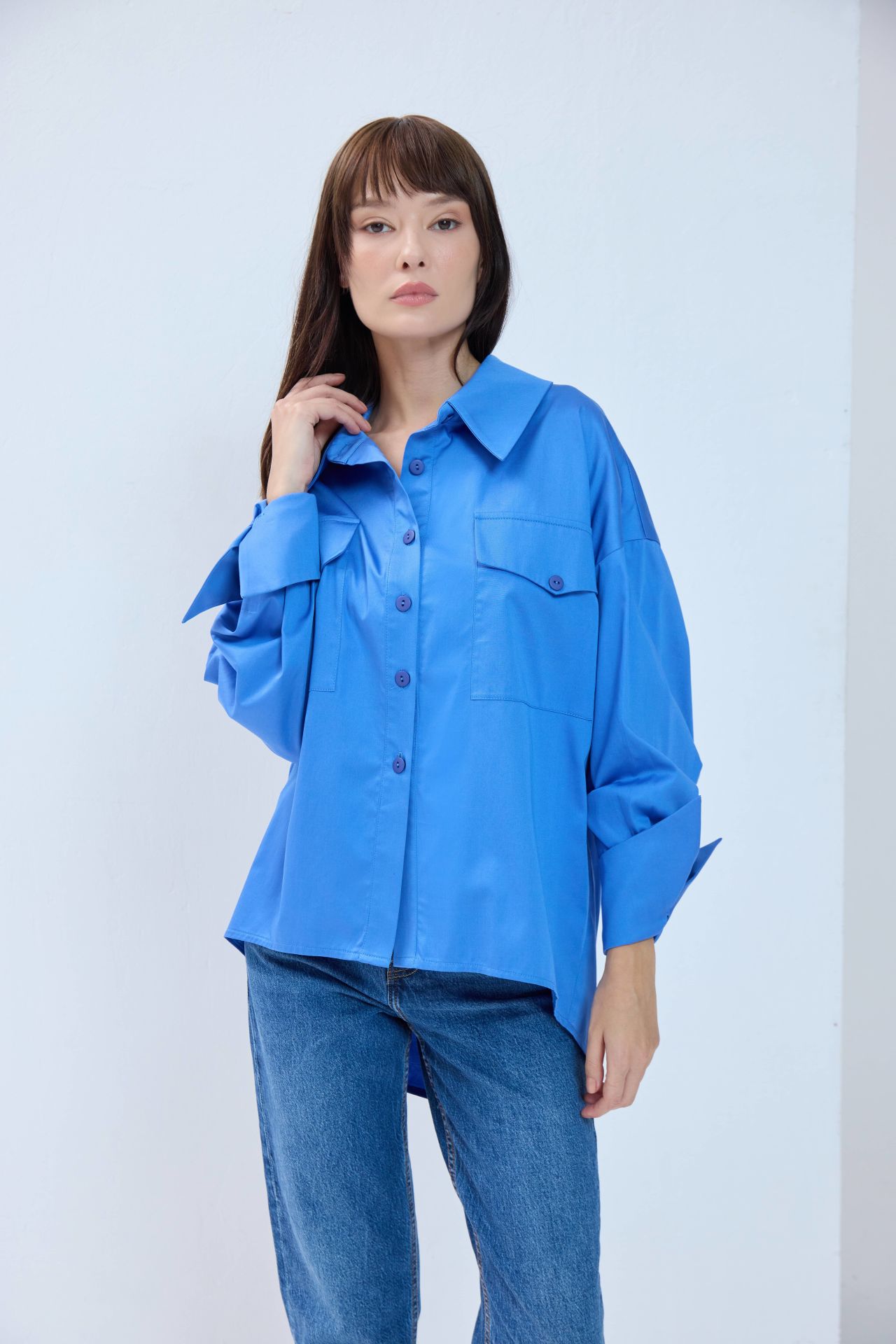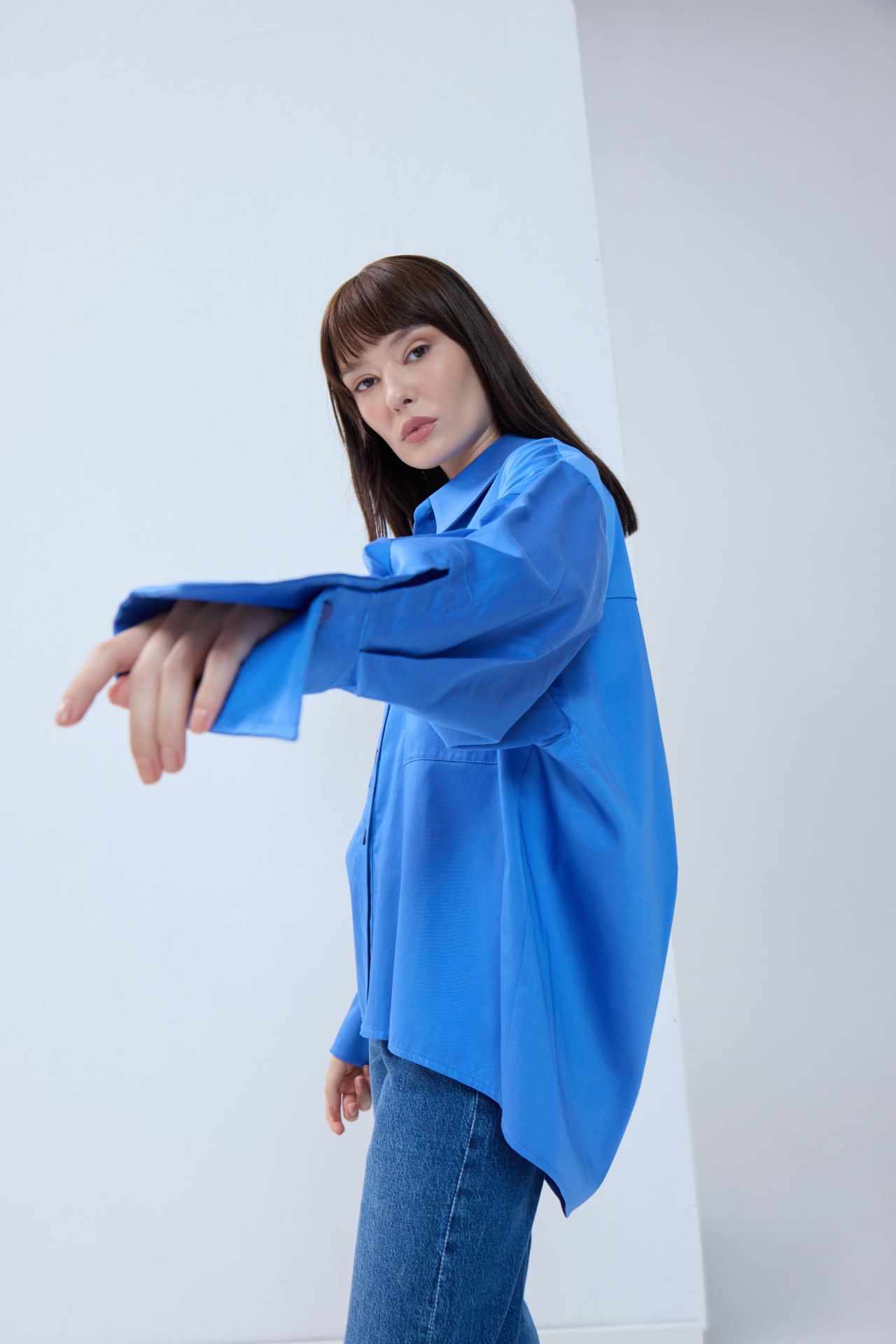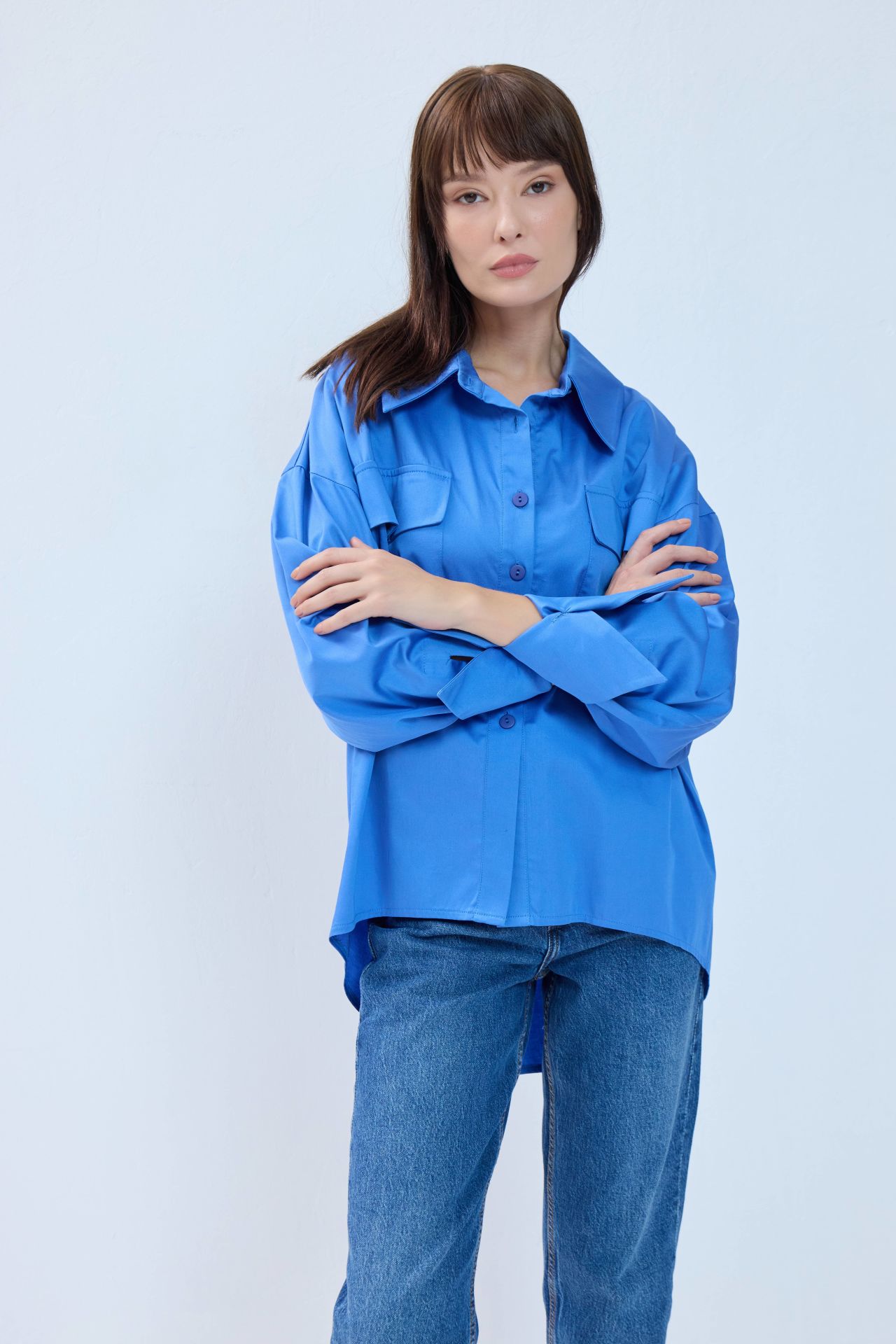 Özel tasarımımız kaplumbağa gömlekle tanışın. Önden klasik uzunlukta, arkaya doğru kesintisiz uzayan bu tasarım gömlek modern ve konforlu bir siluete sahip. Kalıbı oversize'dır.