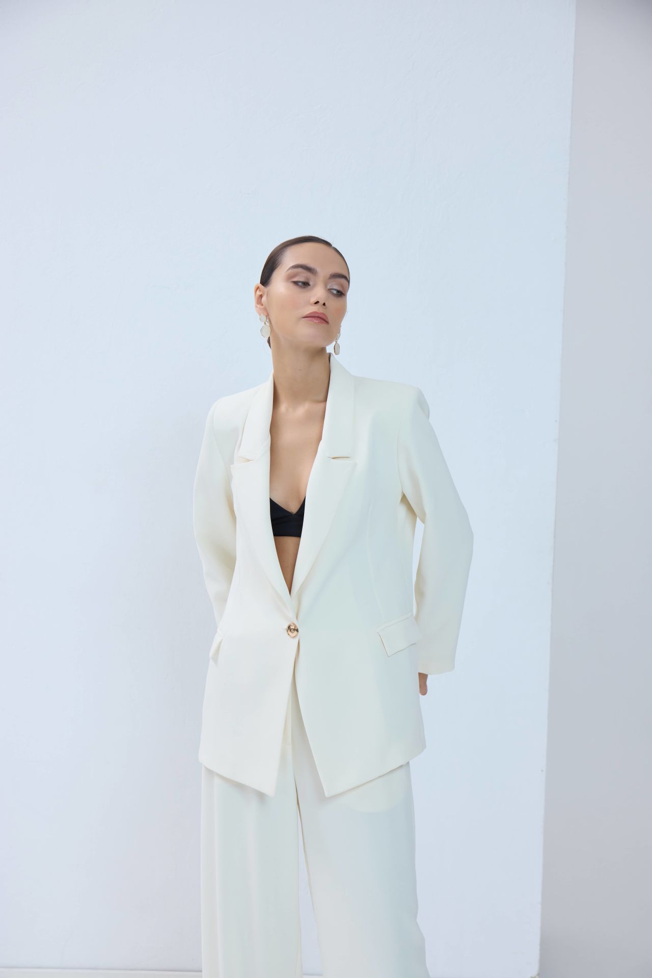 Oversize Blazer Ceket -Ekru 131-2 Oversize Blazer Ceket -Ekru