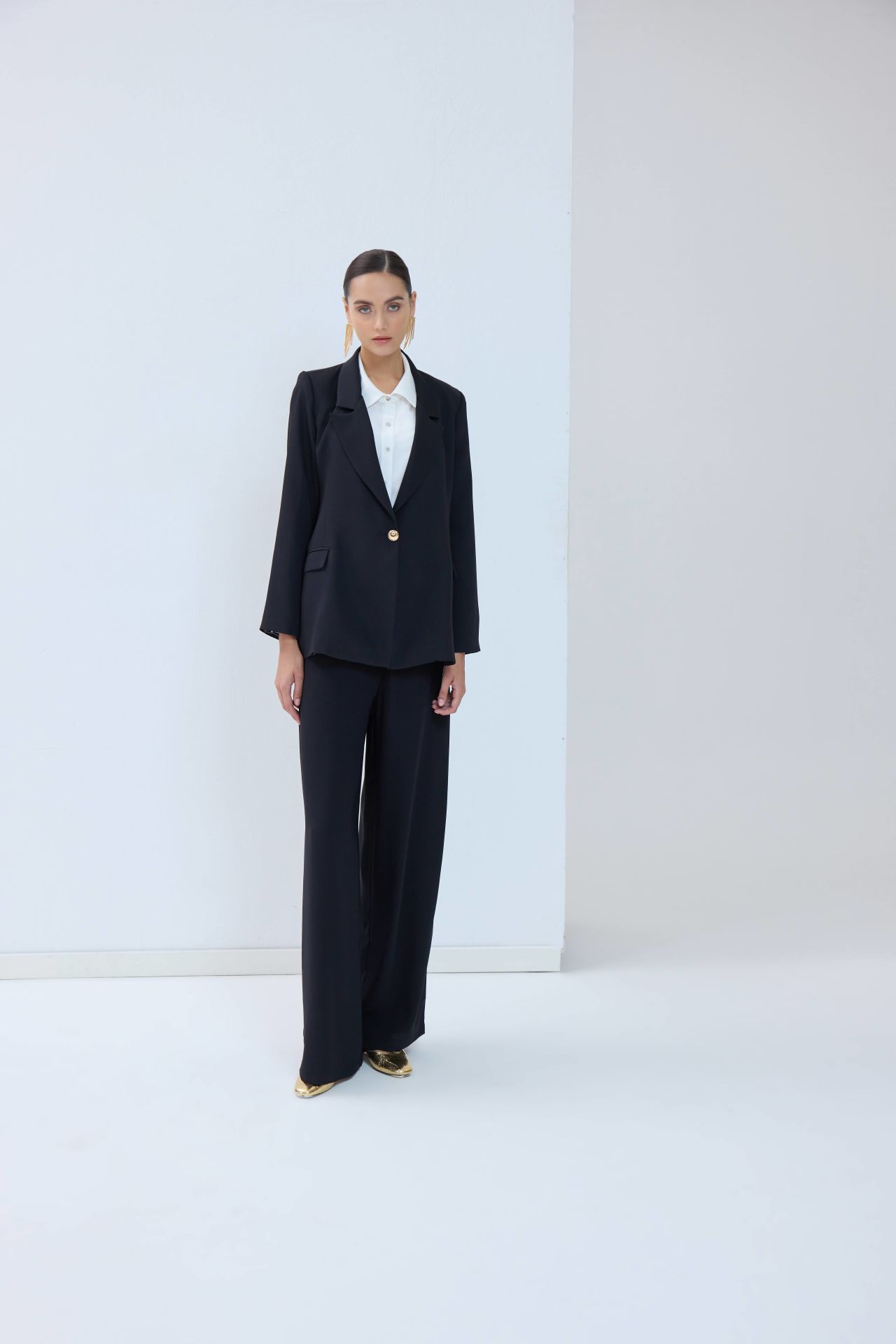 Bu ceket oversize kalıbıyla daha modern ve rahat bir silüet yaratır. Her kıyafetin üzerine giyilebilir ve eski kombinlere yeni bir hava katar.