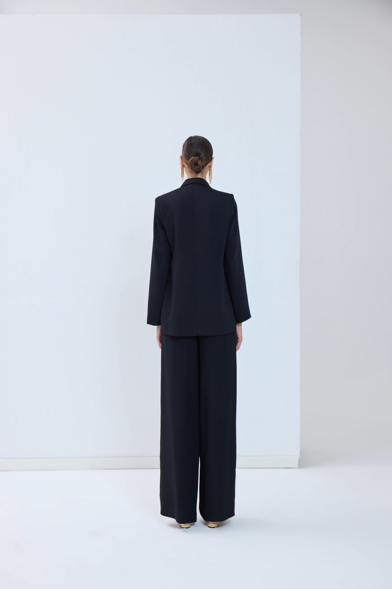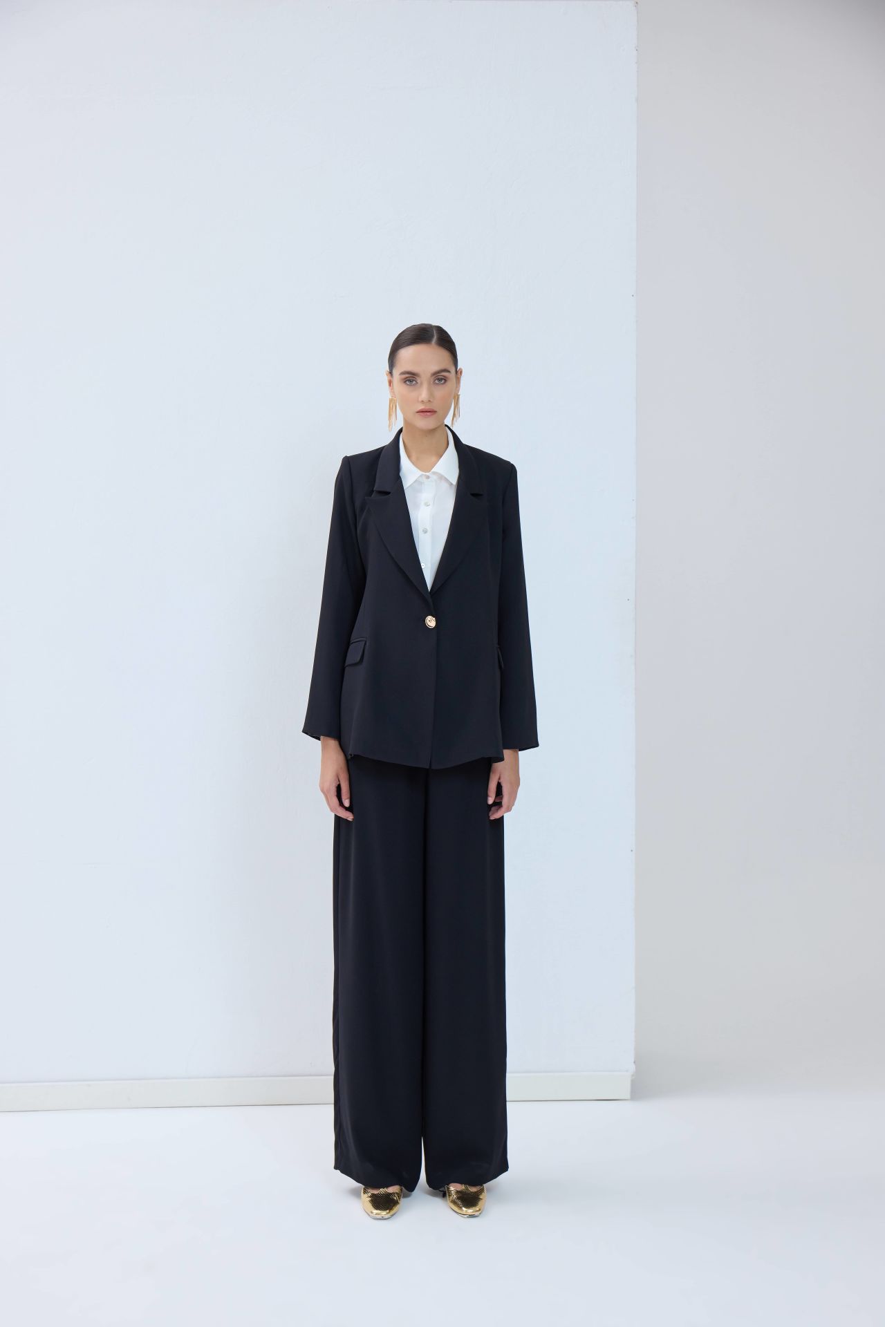 Oversize Blazer Ceket Palazzo Pantolon Takım - Siyah