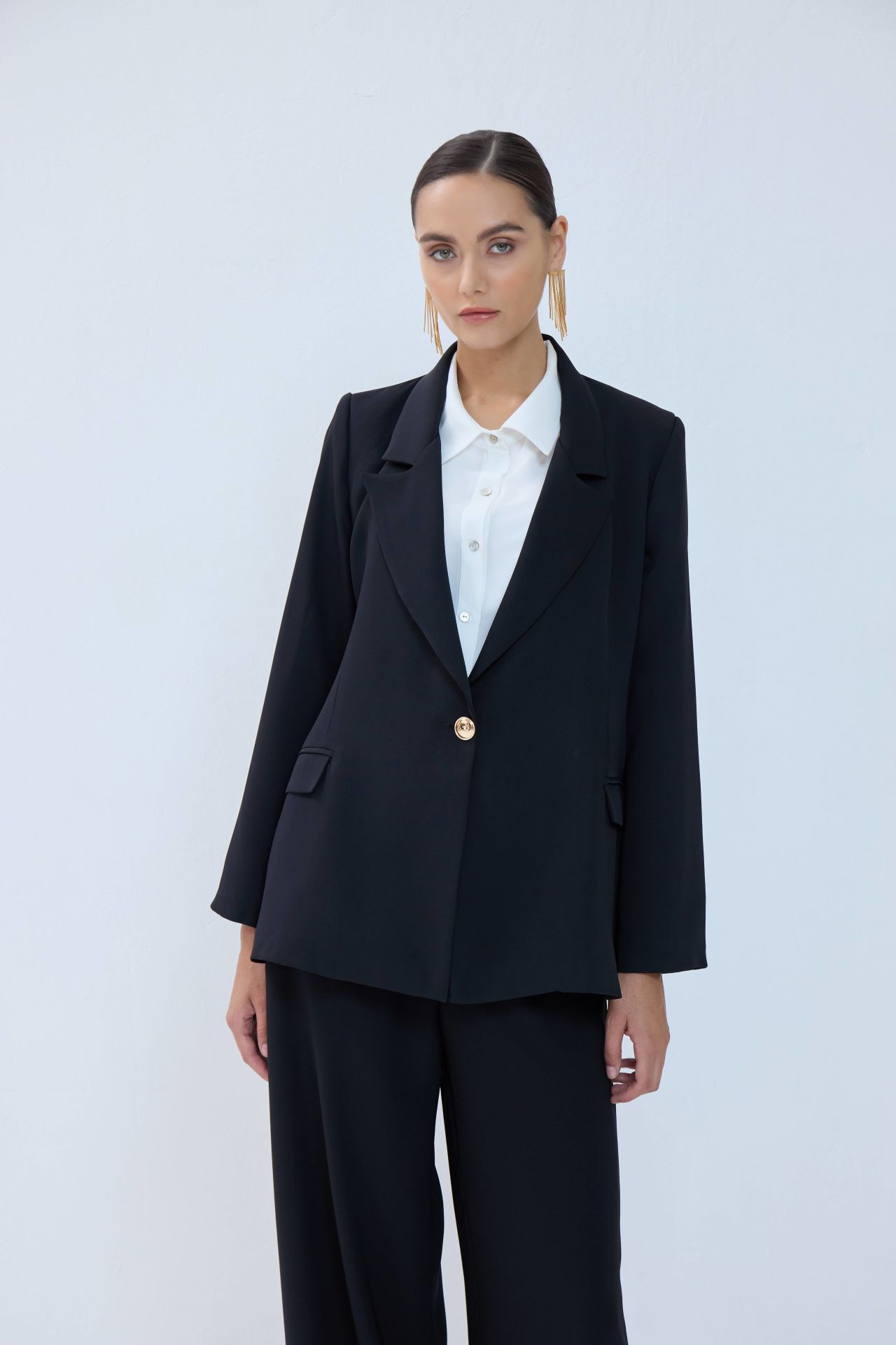 Oversize Blazer Ceket Palazzo Pantolon Takım - Siyah G9P6BXQN9T Oversize Blazer Ceket Palazzo Pantolon Takım - Siyah