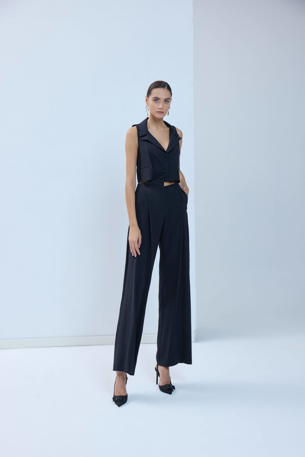 Asimetrik Belli Modal Pantolon - Siyah