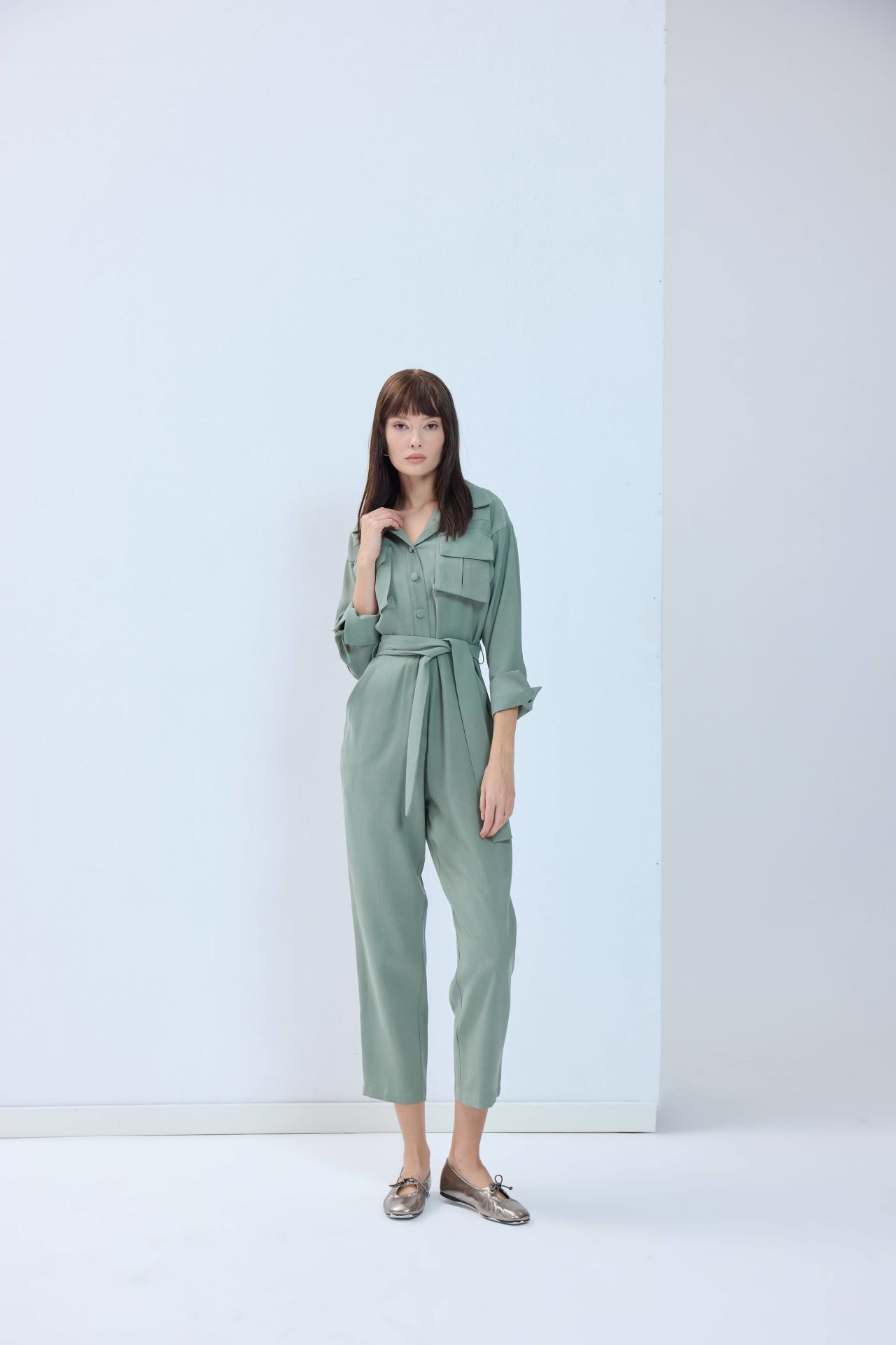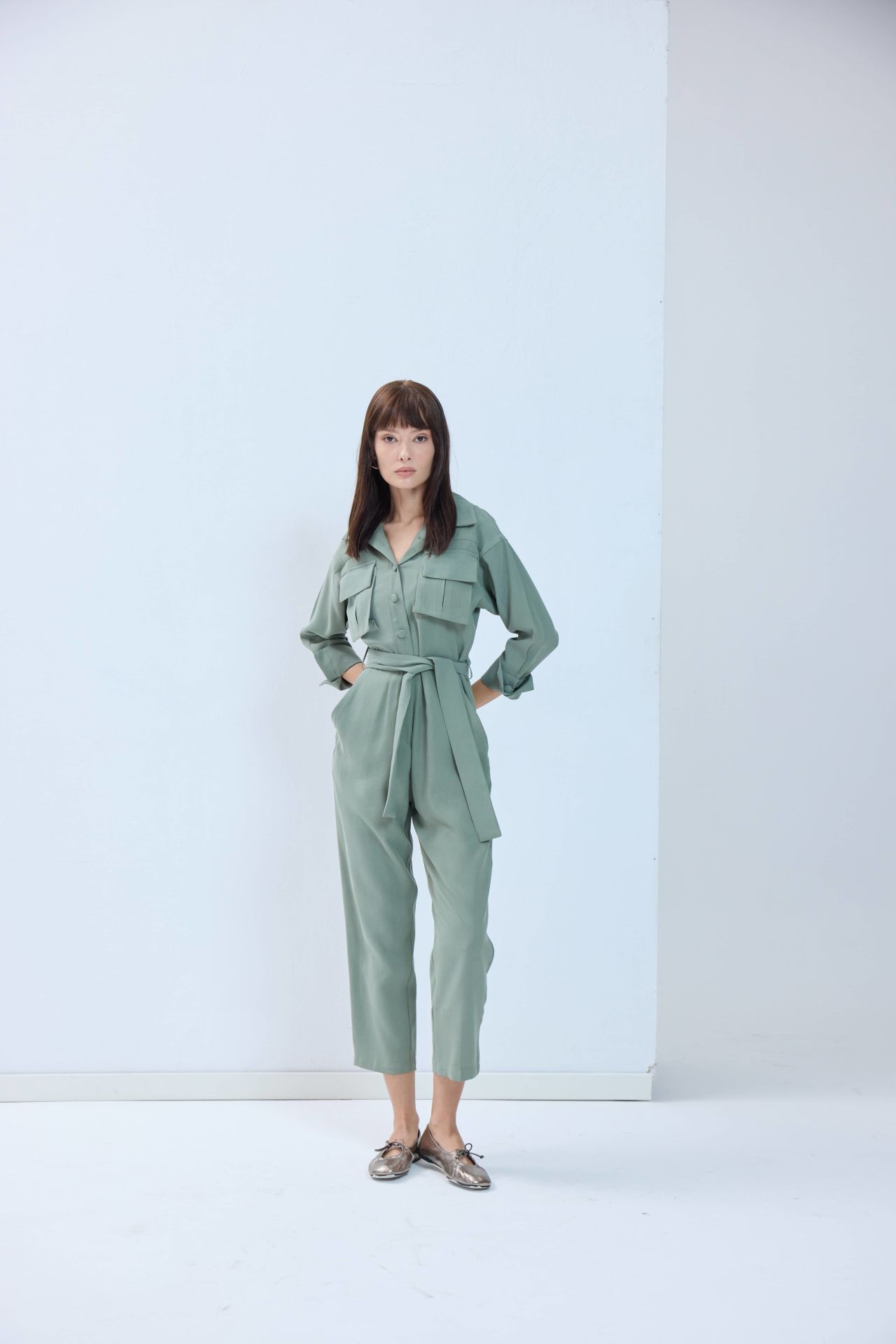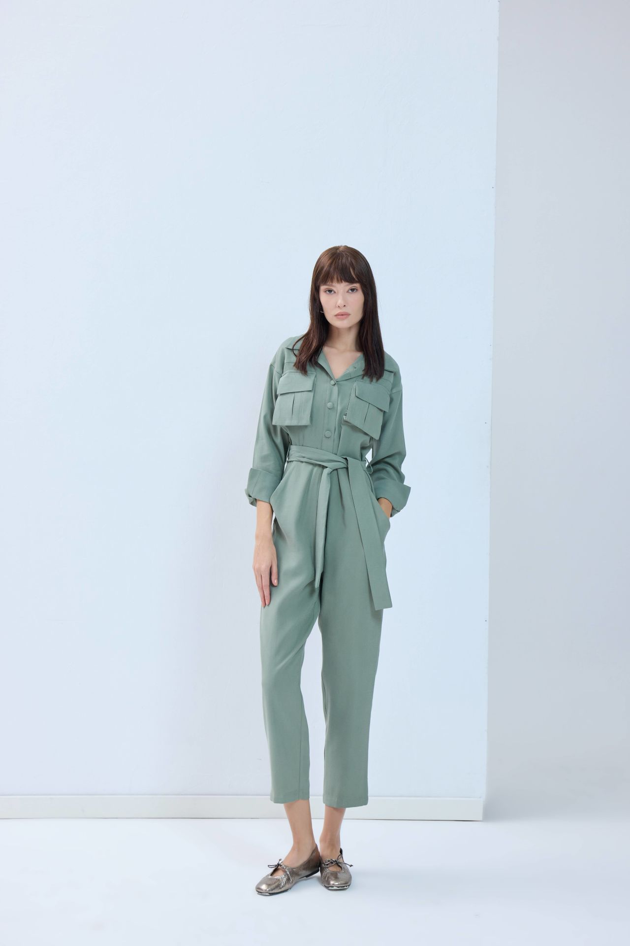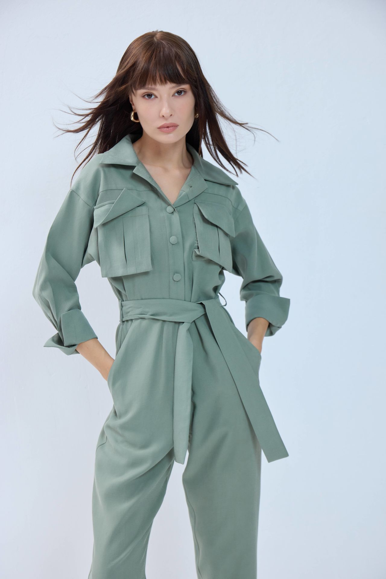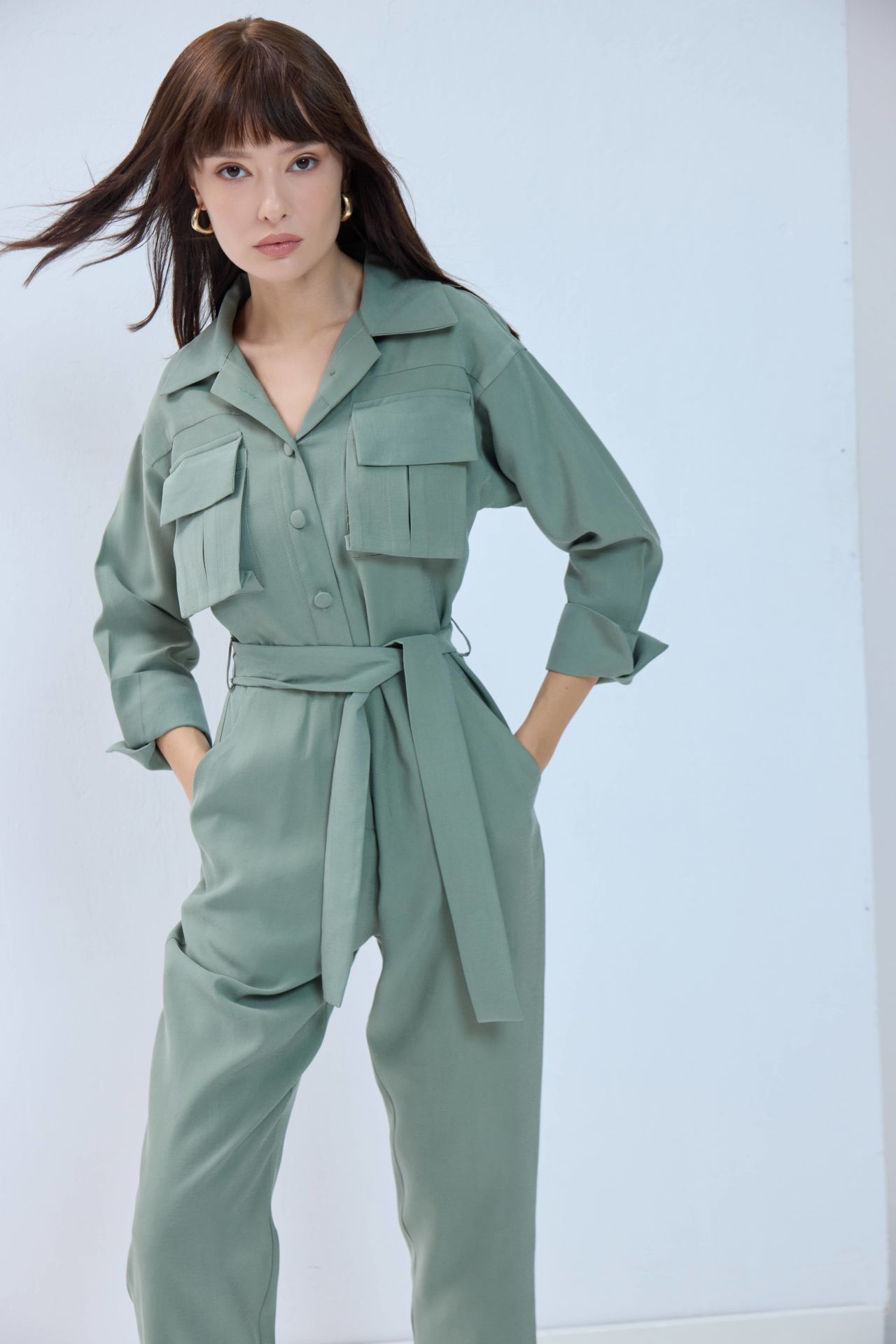 Uzun Kollu Modal Tulum - Yeşil 102-4 Uzun Kollu Modal Tulum - Yeşil