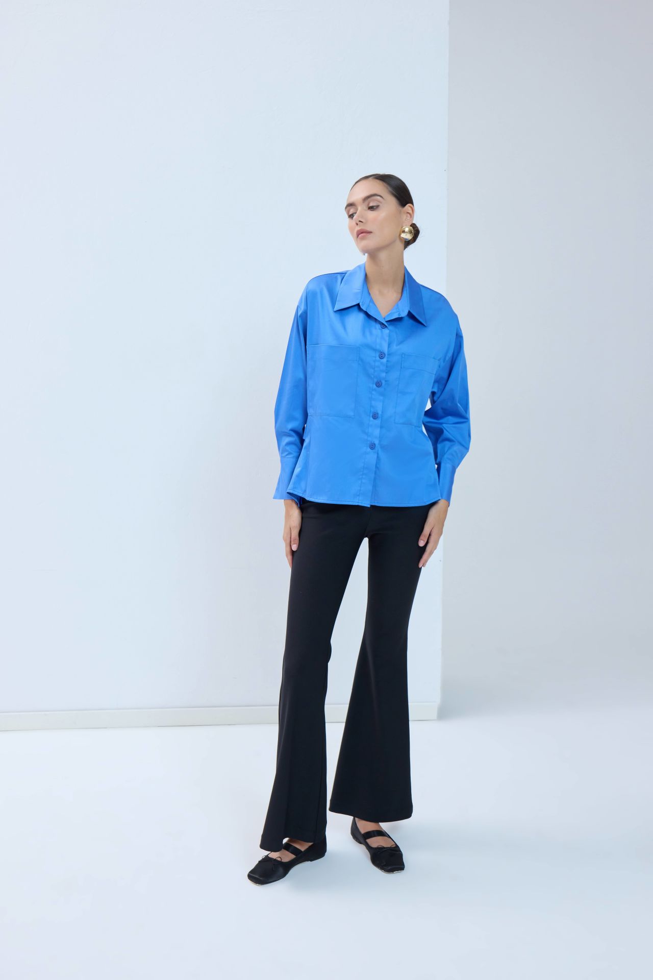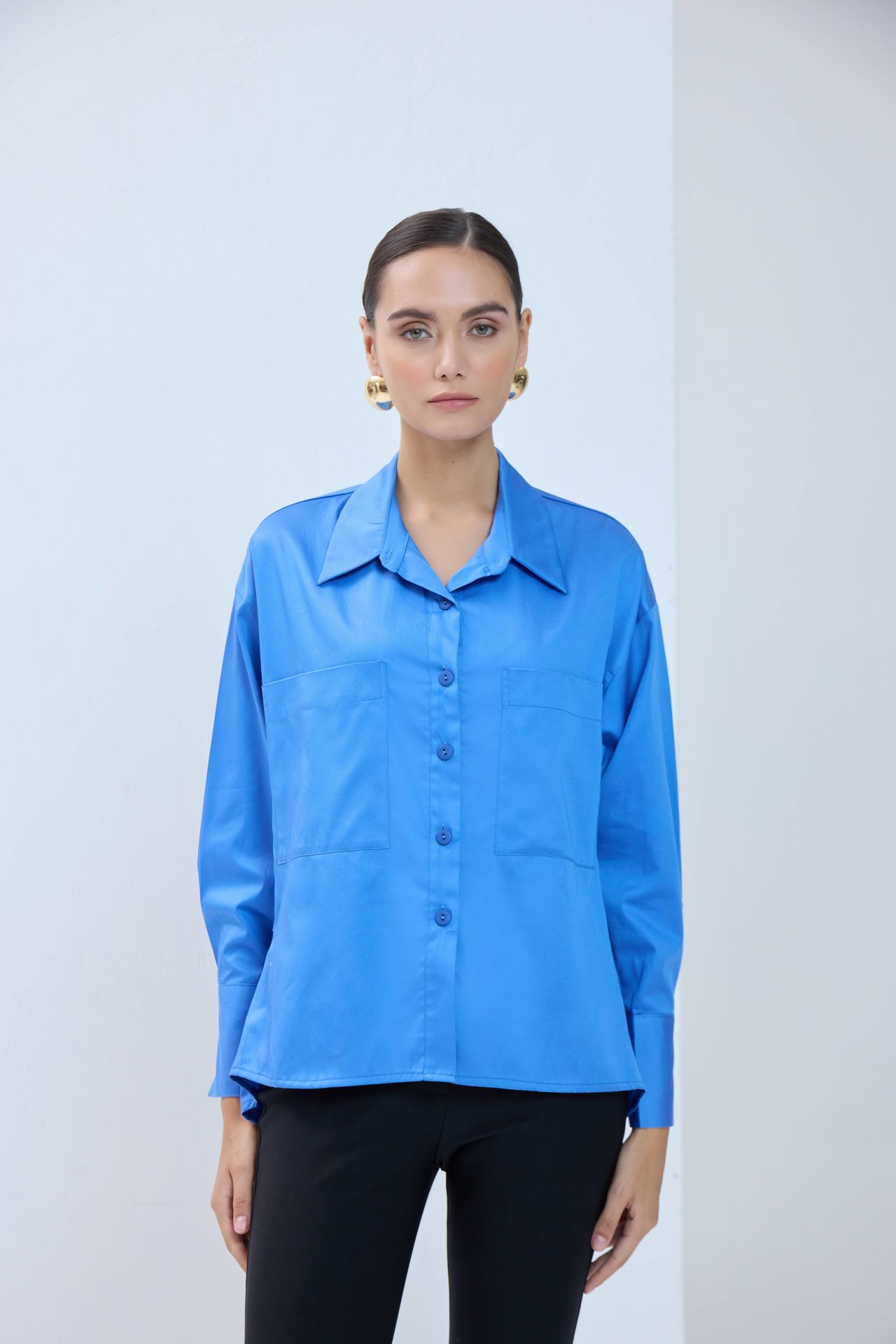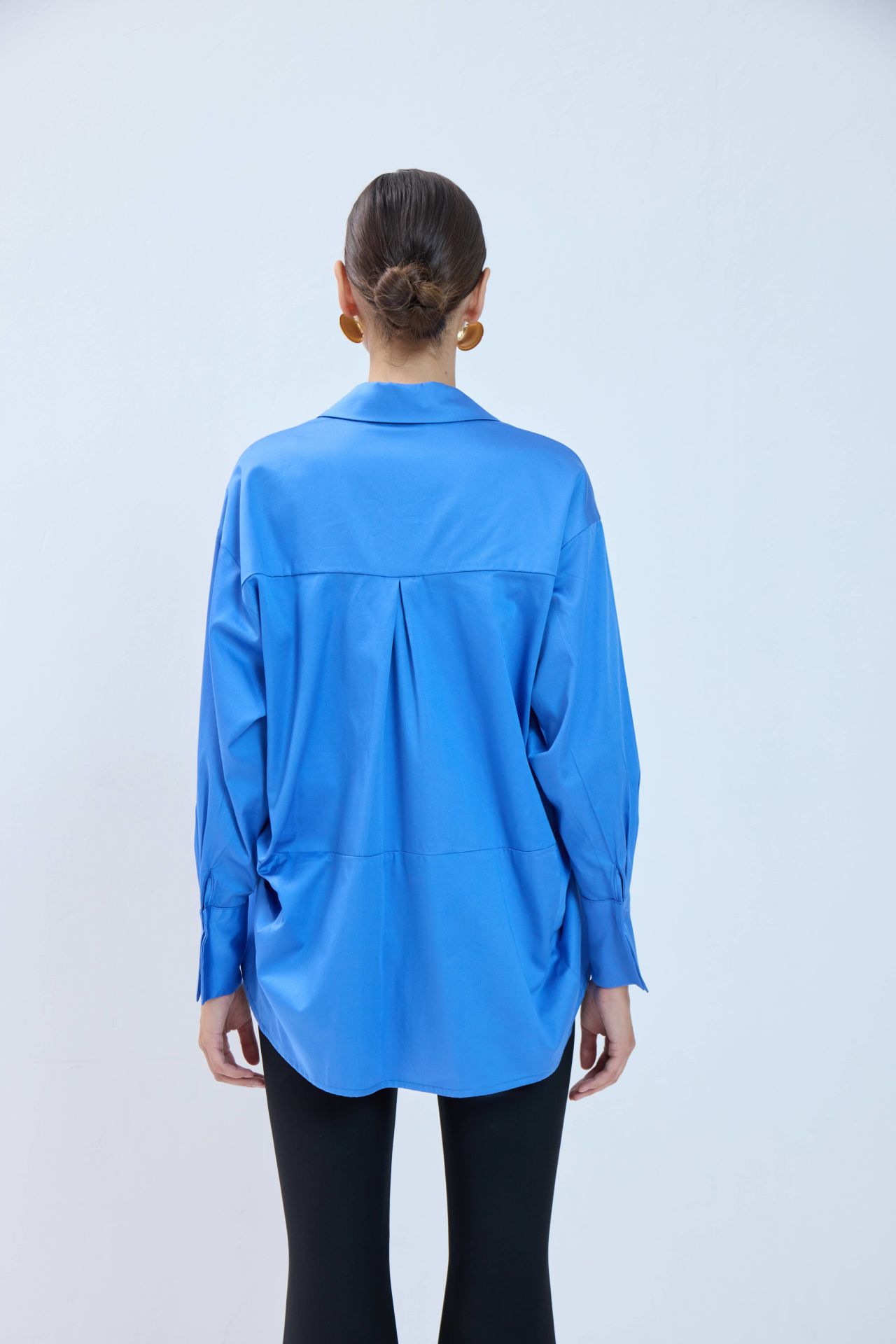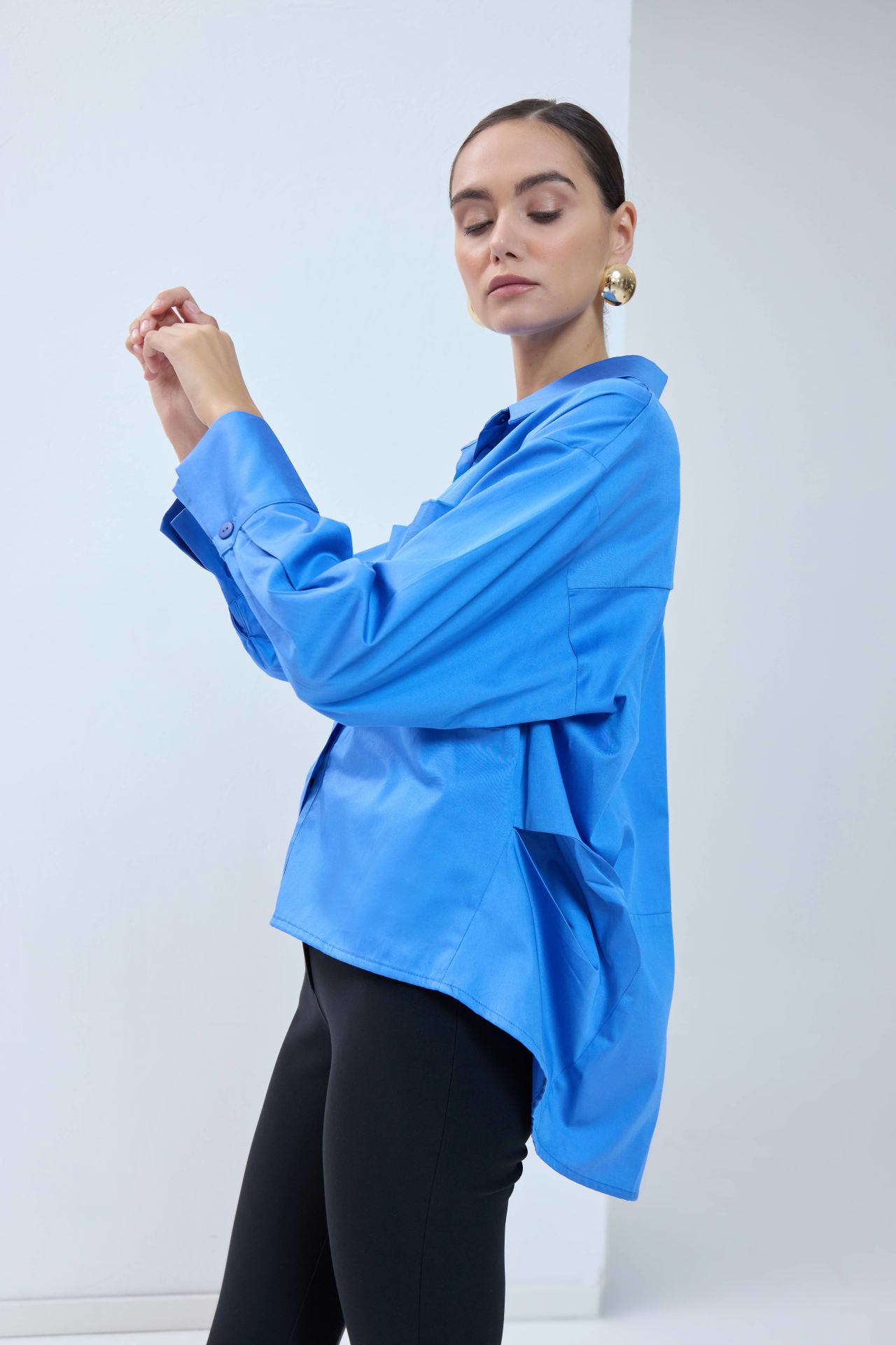 Özel tasarımımız istiridye gömlekle tanışın. Önden klasik uzunlukta, arkaya doğru kesintisiz uzayan bu tasarım gömleğimizin yanda sahte cep detayı bulunmakta olup modern ve konforlu bir siluete sahiptir. Kalıbı oversize'dır.