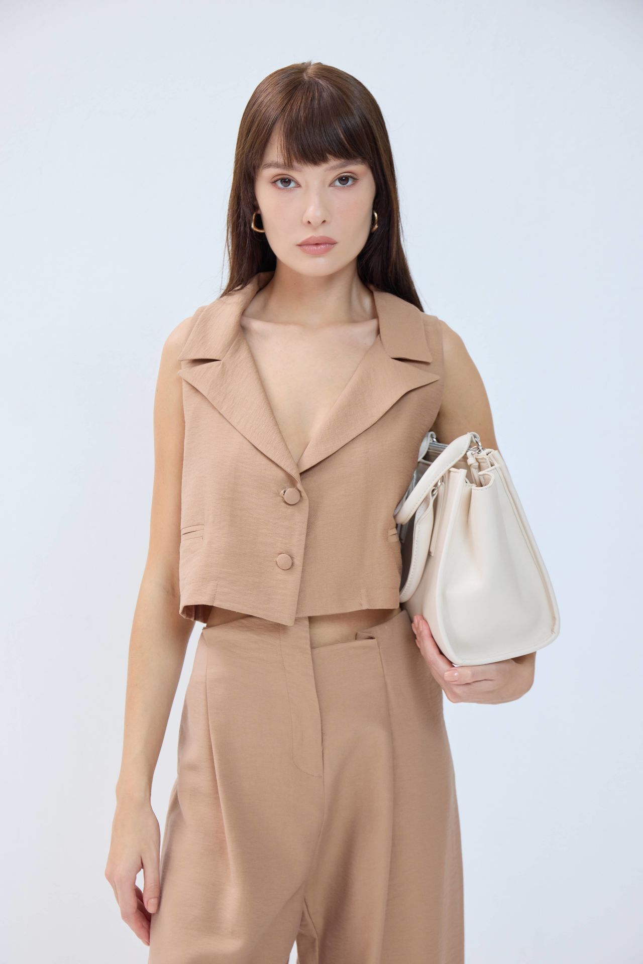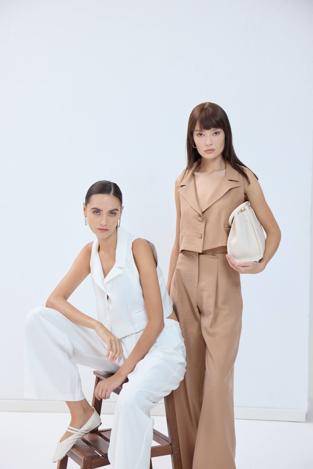 Doğal kumaşı sayesinde nefes alan, çift düğmeli bu yeleğimiz pantolonlarımızla birlikte şahane kombin yapmak için ideal parçalarından biridir.