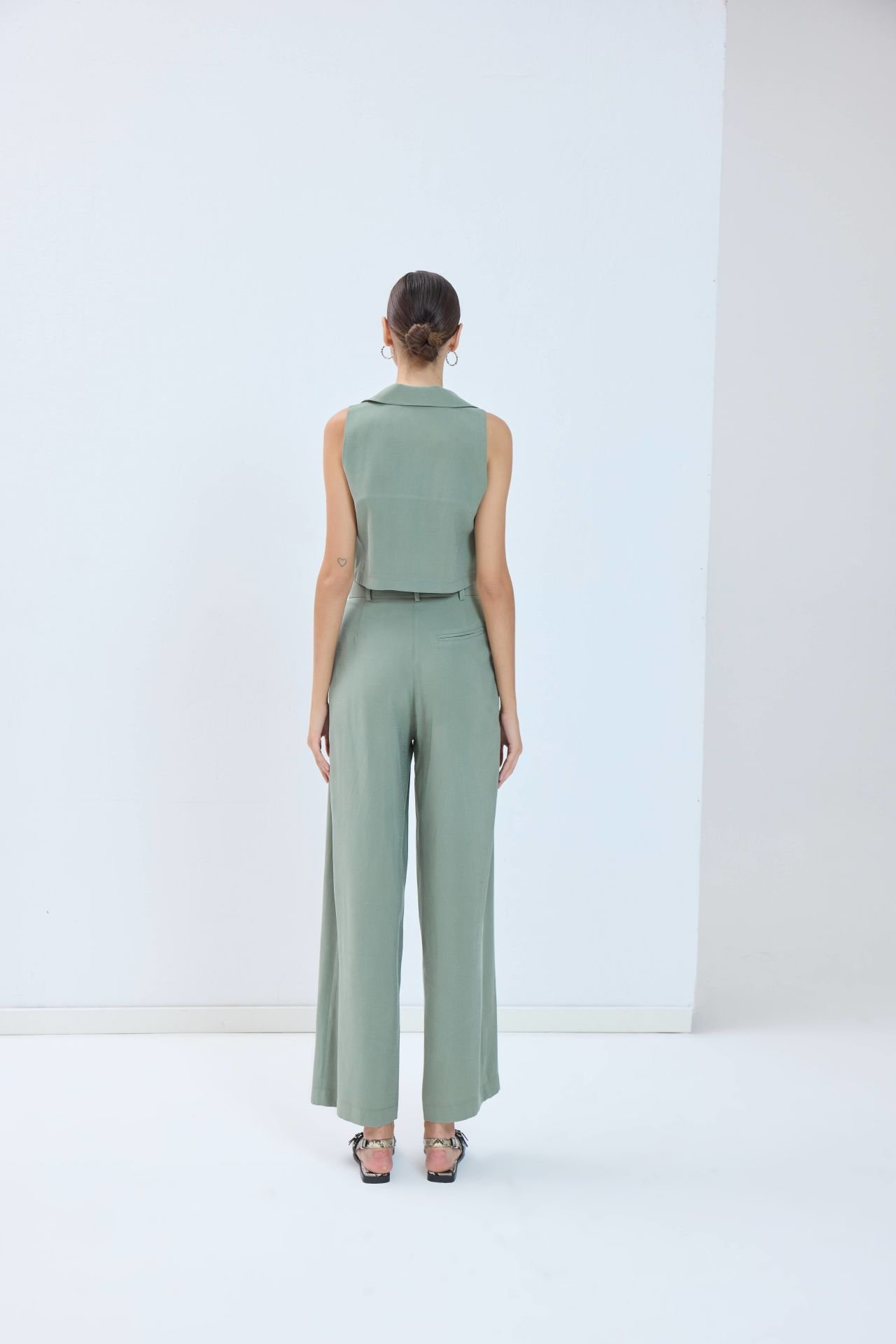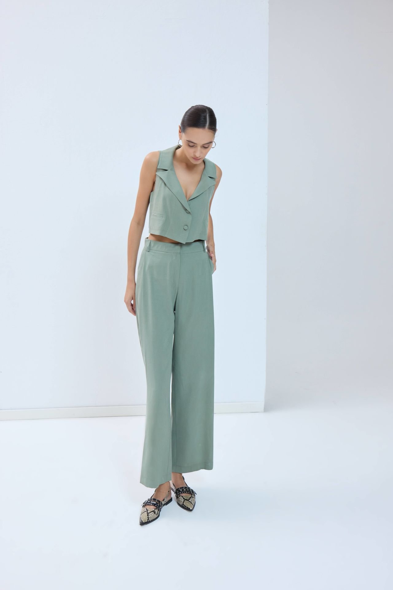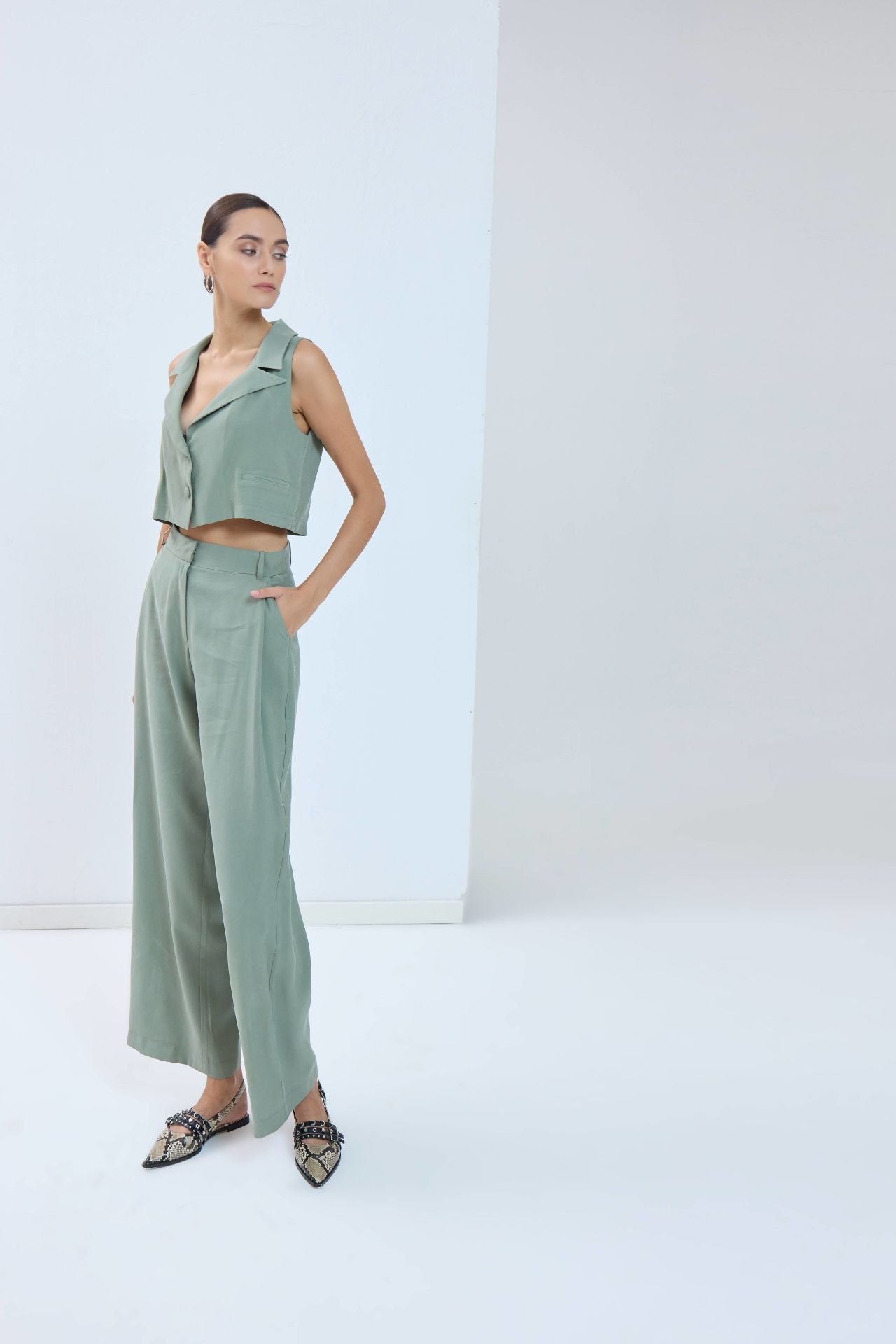 Modal Çift Düğmeli Yelek - Yeşil 110-2 Modal Çift Düğmeli Yelek - Yeşil