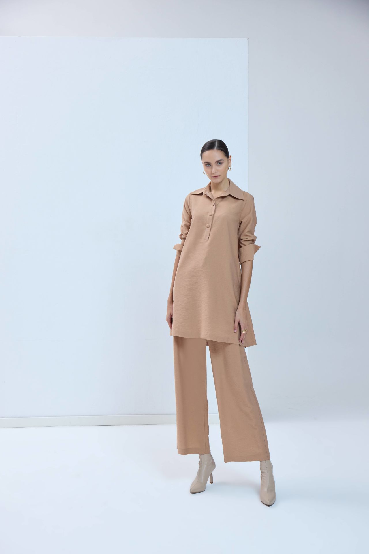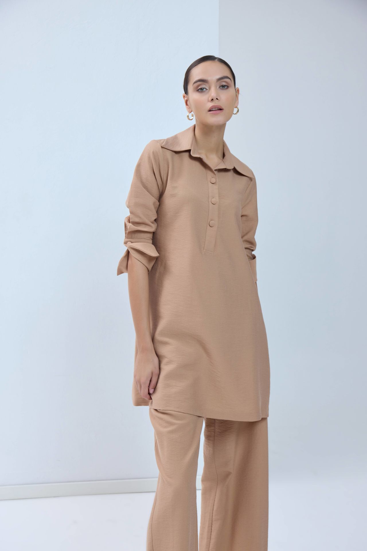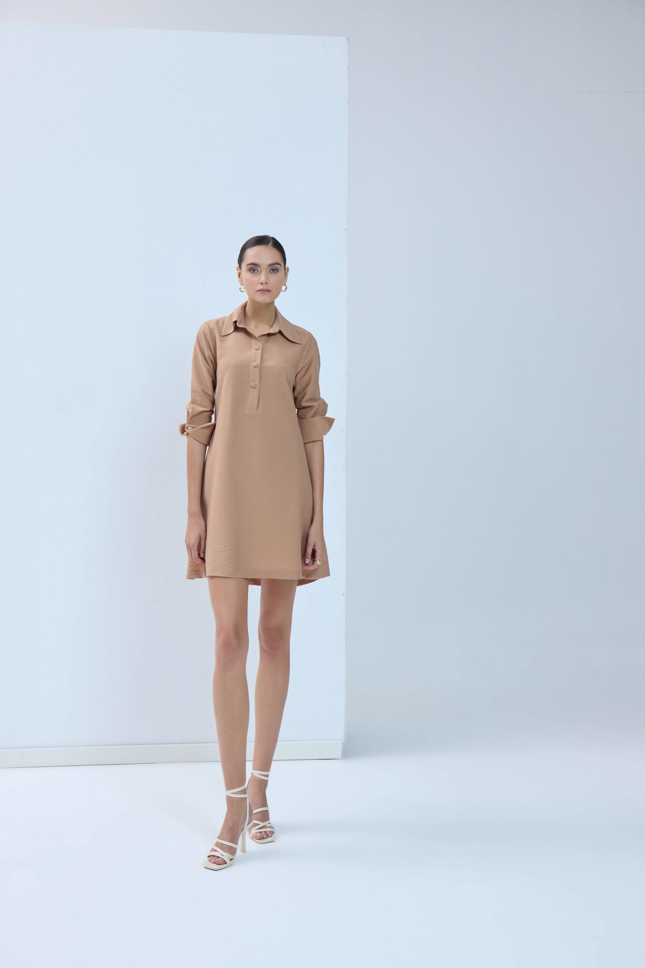 Tensel Gömlek Yaka Mini Elbise - Tarçın 109-1 Tensel Gömlek Yaka Mini Elbise - Tarçın