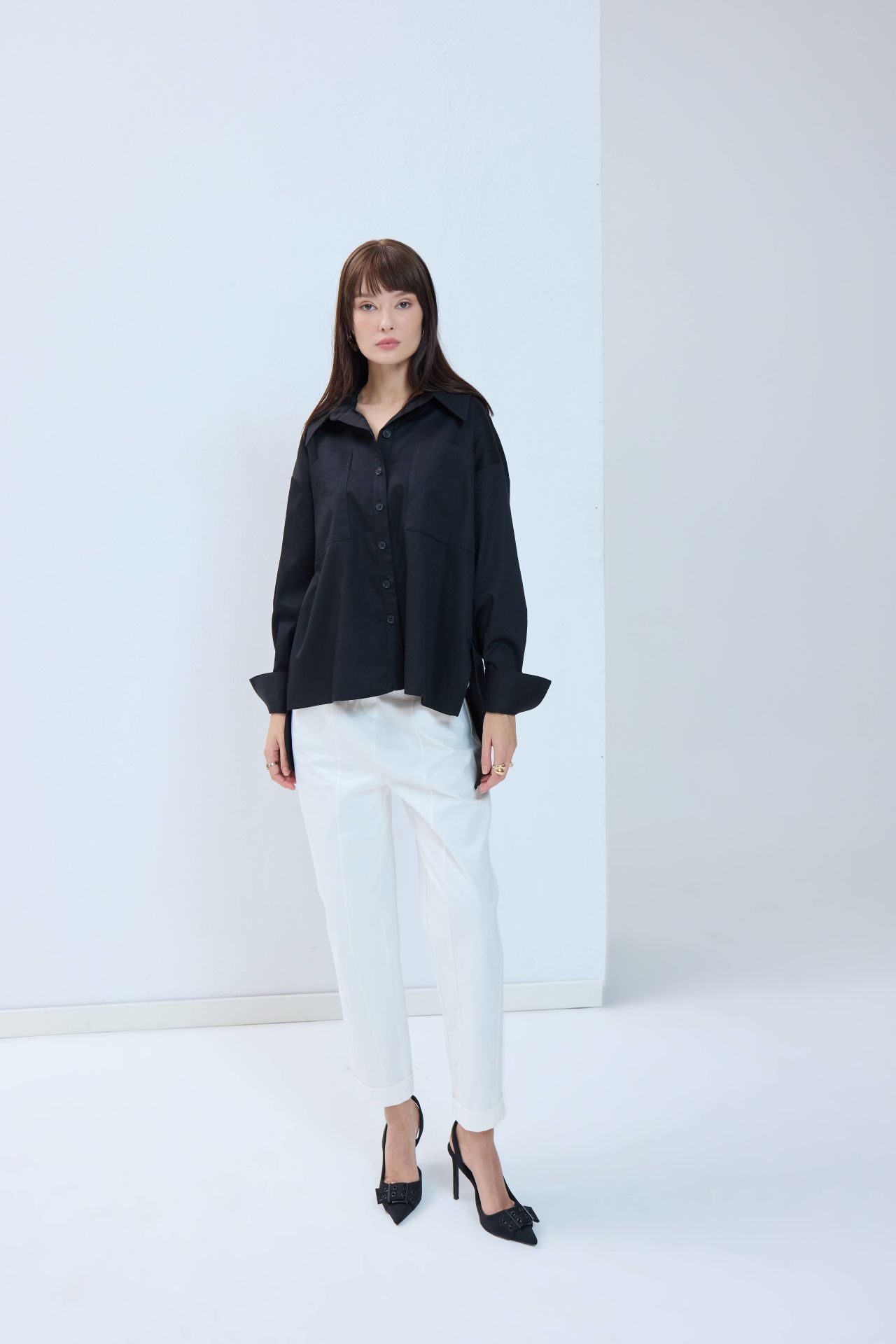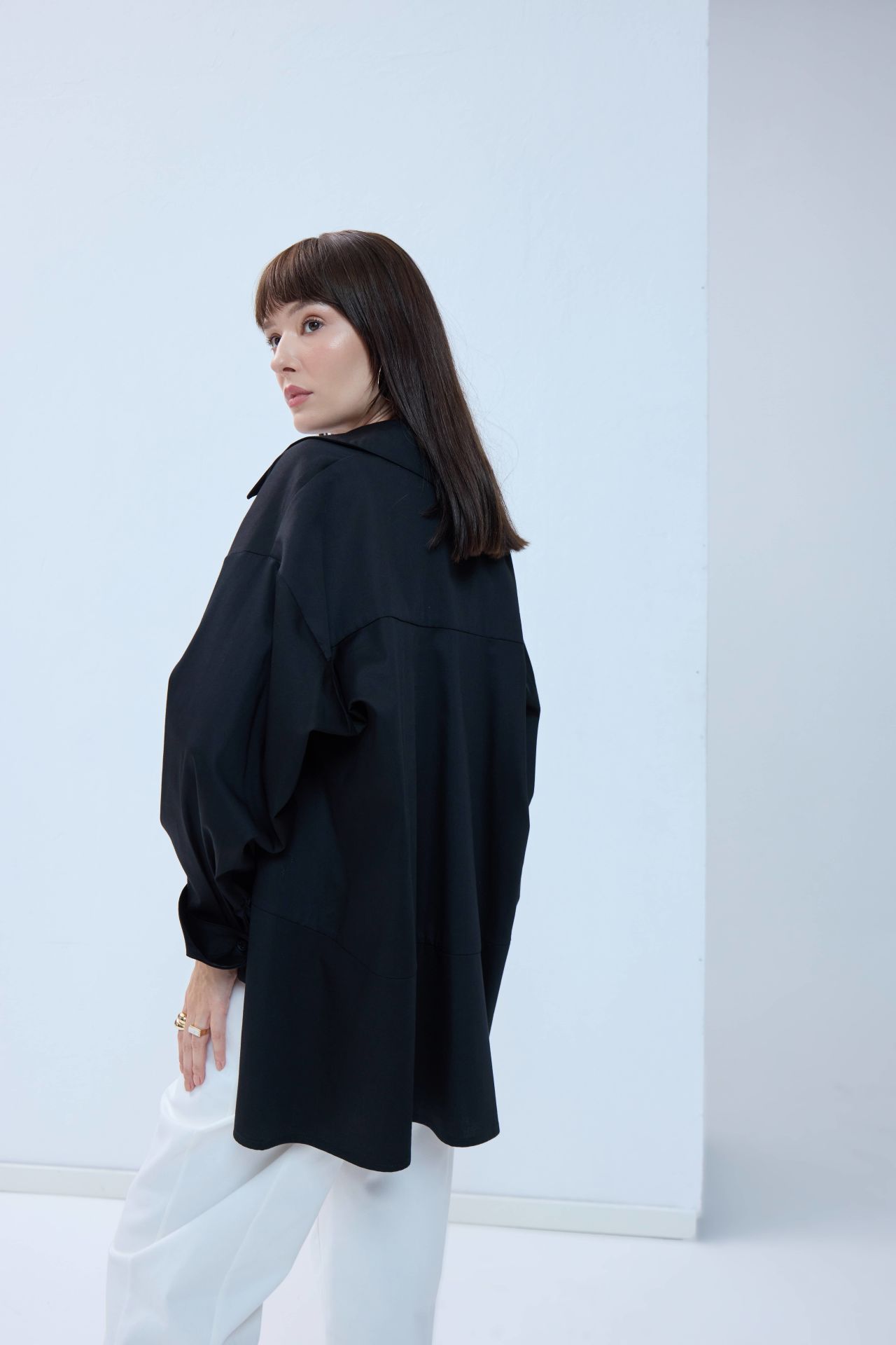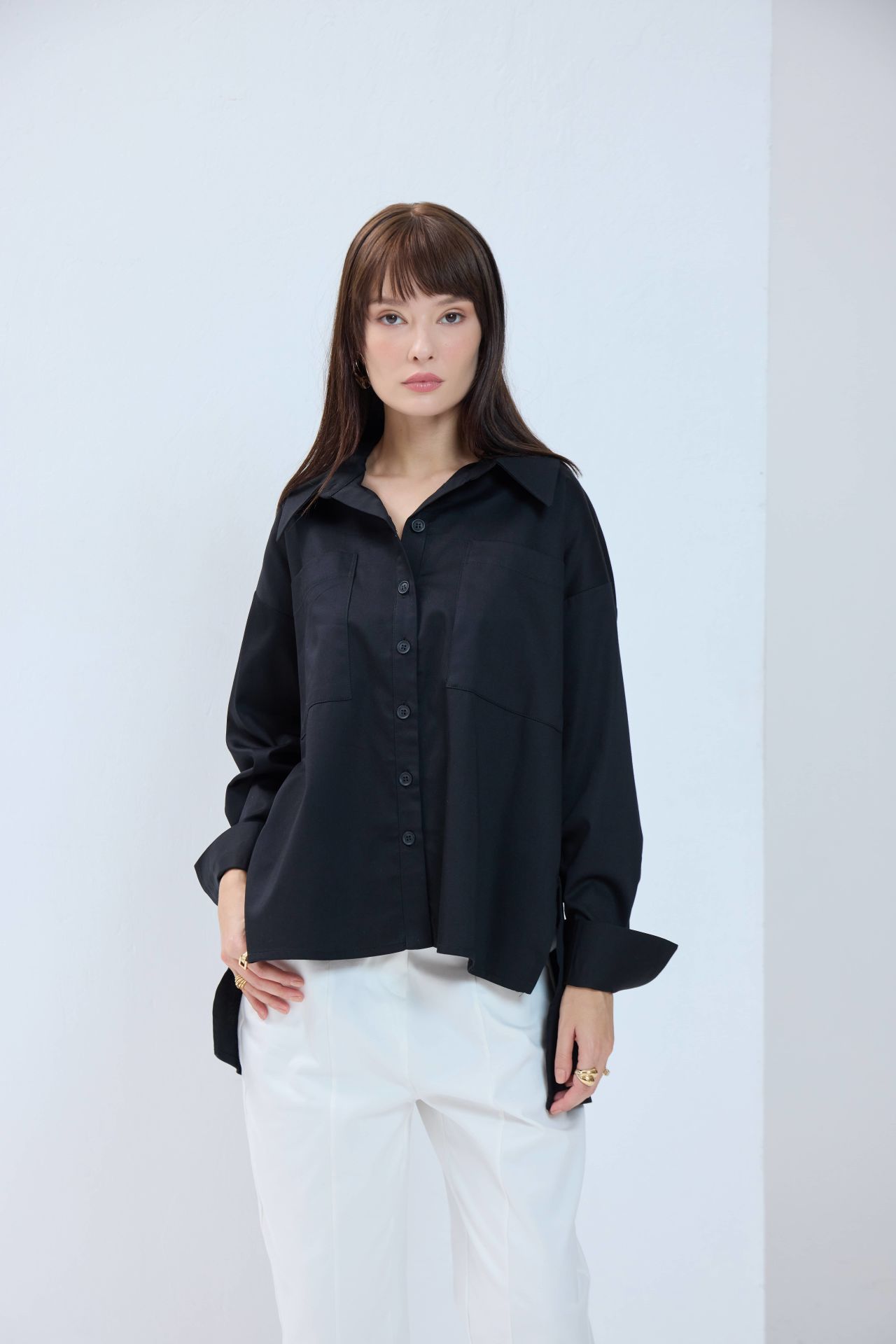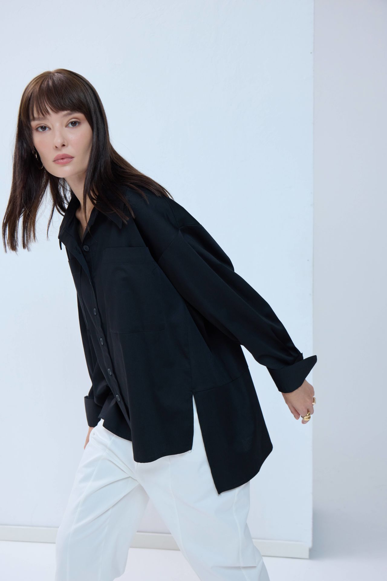 Yandan Yırtmaçlı Gömlek - Siyah 169-2 Yandan Yırtmaçlı Gömlek - Siyah